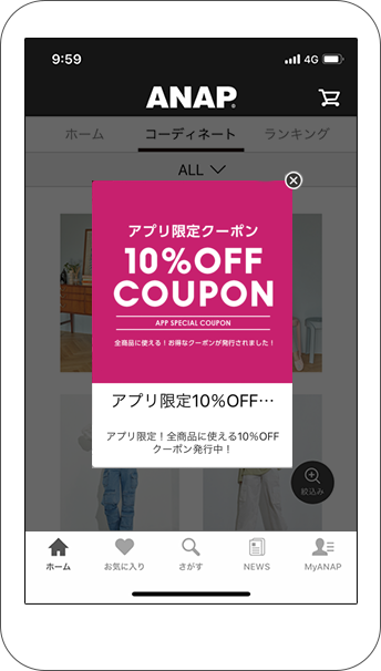 アプリ限定のお得なクーポンやポイント企画、アプリ限定のセールを開催!