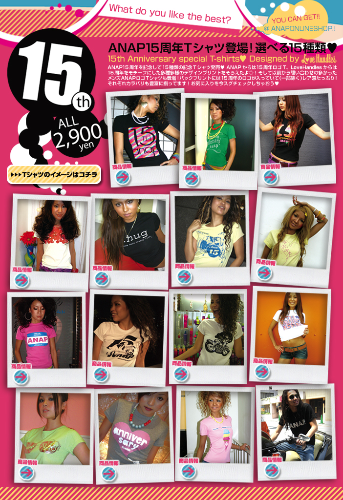 MINMI meets ANAP > ANAP ONLINE SHOP the CATALOGUE > ANAP NIGHT > 15th Annivers ary special T-shirts > ENQUETE > ANAP Psychological
