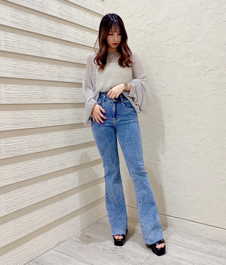 透かし編みニットでヘルシーに肌見せ。