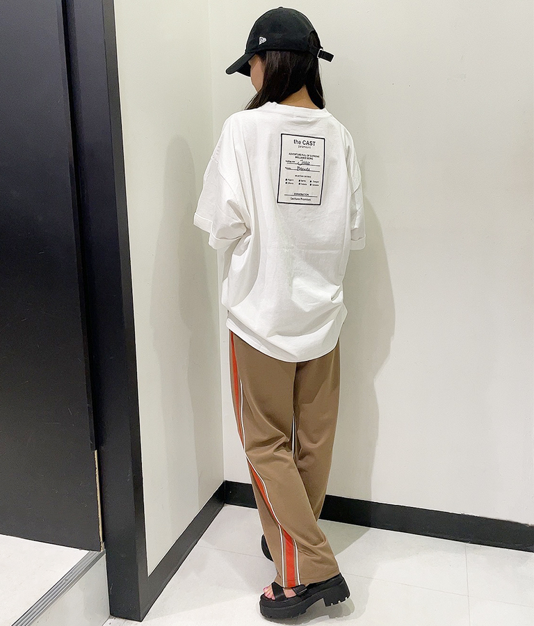 トラックパンツにオーバーサイズTシャツをインしてスタイルアップ♪