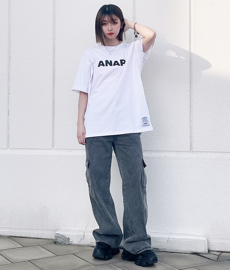 ANAPロゴTシャツとデニムカーゴパンツでボーイッシュコーデ!