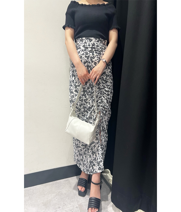 モノトーンで統一した大人カジュアルコーデ。 カットソーはスクエアネックとしてもオフショルダーとしても着られて、色気のある雰囲気に。