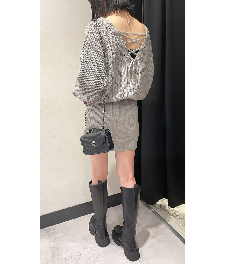 ミニ丈のワンピースとロングブーツは相性バツグンです◎