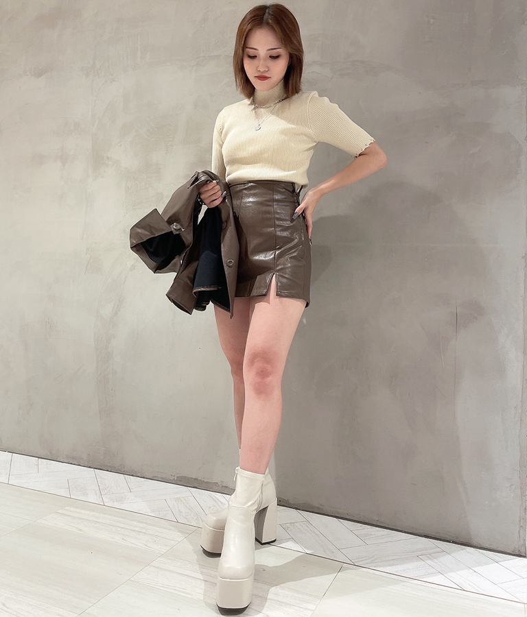 ブラウンのフェイクレザーセットアップで秋らしいコーデに♪