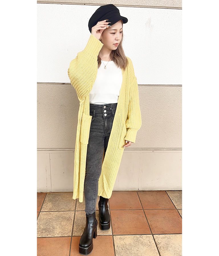イエローのロングカーディガンでカジュアルコーデを格上げ!