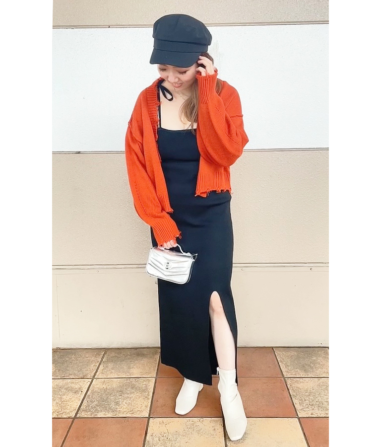 カーディガンはアクリル100%素材なので、キャミワンピの上から羽織ってもチクチクしません♪