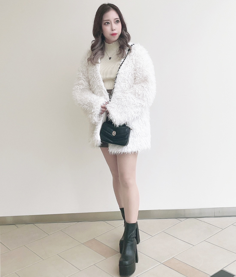 ボリューム感のあるボアカーディガンはシンプルなインナーと合わせるのがおすすめ♪